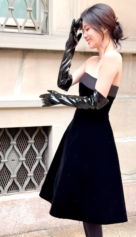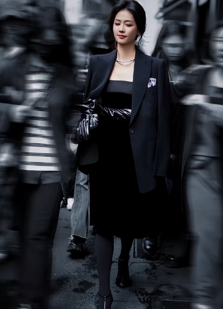 这次白鹿在时装周的打扮也走的是成熟大方的路线,一条黑色连衣裙秀出自己的好身材。