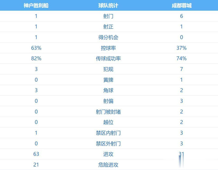 从上半场来看,成都队虽然控球率只有36%,不过他们在进攻上有着一定的优势,射门数6-1领先、射正1-1,可以看出,进攻效率不如对手,成都队场面一度处于下风,不过费利佩的一脚世界波破门还是相当精彩的,两队半场打平。