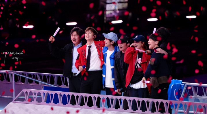 4 月 10 号张杰北京鸟巢演唱会第九场,直接变成快乐家族大型团建现场,何炅、李维嘉、吴昕罕见同框,坐着那辆 100 米长的 “JZ2026 次鸟巢专列” 绕场互动,全场荧光棒挥舞、大合唱炸场!
